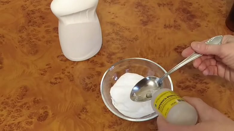 Для приготовления эффективного чистящего средства смешайте 3 столовые ложки соды, 3 столовые ложки перекиси водорода и 1 столовую ложку средства для мытья посуды.