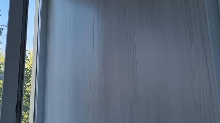 Первоначально на её балконе стены были закрыты пластиковыми панелями.