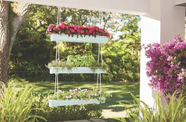 Если сад совсем небольшой, но вам хочется вырастить как можно больше декоративных растений, смастерите подвесные клумбы из водосточного профиля. Кроме того, это станет отличным решением, если вы хотите вырастить какие-то травы вне зоны доступа вашего питомца.
