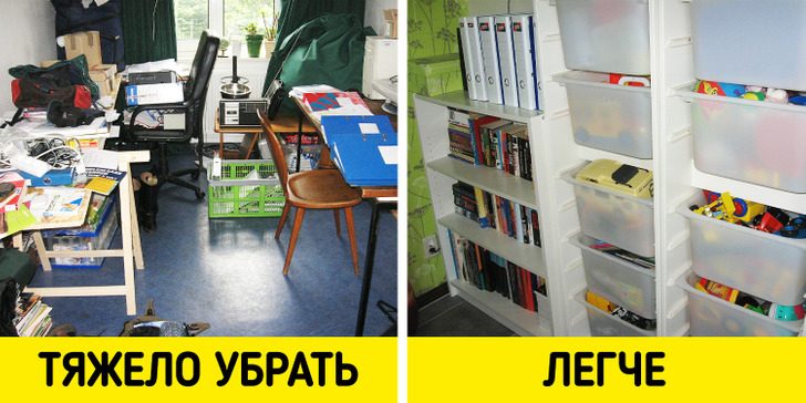 Чем чище квартира, тем проще уборка. Нам в этом помогла организация пространства. Когда вещи хранятся в специально выделенных отсеках или ящиках, они не создают беспорядок, их сложнее испачкать грязными руками или случайно пролитыми напитками.