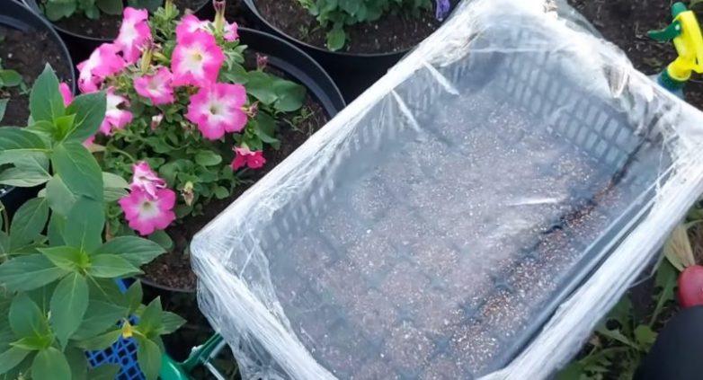Накройте ящик несколькими слоями пищевой пленки для создания парникового эффекта и поставьте его в тень.