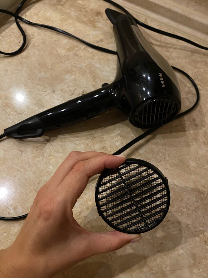 У каждого фена есть вентиляционное отверстие для фильтра, который защищает волосы от нагревательного элемента внутри и препятствует попаданию пыли внутрь прибора. Когда вентиляционное отверстие загрязнено, воздух не может поступать, что приводит к перегреву фена.