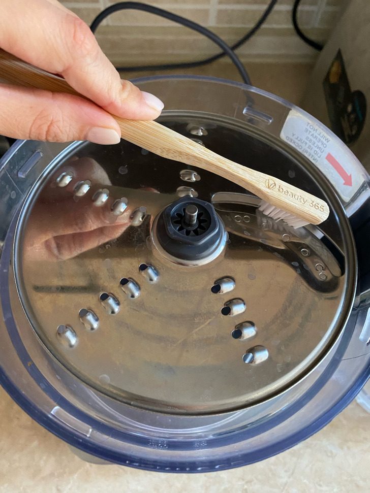Со временем это может привести к повреждению механизмов блендера и затуплению лезвий, а сам прибор станет рассадником бактерий. Как только вы закончите работу, просто замочите чашу прибора в теплой воде. Также можно использовать старую зубную щетку, чтобы почистить труднодоступные места.