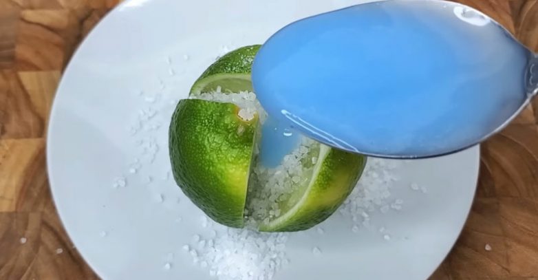 Первый вариант: сверху на соль налейте 1 столовую ложку белого уксуса, который сделает аромат лайма еще более насыщенным.