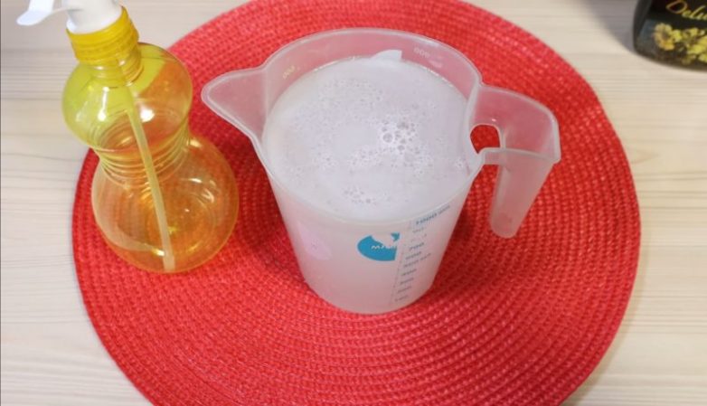 Речь идет о простом, но крайне эффективном средстве. В 1 л теплой воды добавляем 1 ст. л. кондиционера для белья, желательно неконцентрированного, т.е. жидкого по консистенции, 1 ч. л. соли и 5 ч. л. 6 % уксуса, хорошо все перемешиваем.