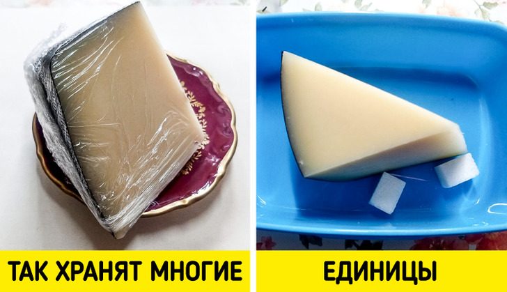 Чтобы сыр дольше сохранял свежесть, его нужно держать в холодильнике в контейнере с крышкой, предварительно поместив туда пару кусочков сахара. Они впитают лишнюю жидкость, благодаря чему в емкости сохранится оптимальный уровень влажности. После того как кубики сахара станут мягкими, их нужно заменить новыми.