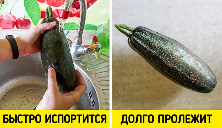 Секрет длительного хранения кабачков заключается в том, чтобы исключить любое их взаимодействие с влагой. Мыть плоды, которые вы не собираетесь приготовить прямо сейчас, категорически не рекомендуется. Более того, перед отправкой кабачков в холодильник нелишним будет протереть их сухой салфеткой, чтобы избавить продукт от лишней влаги.