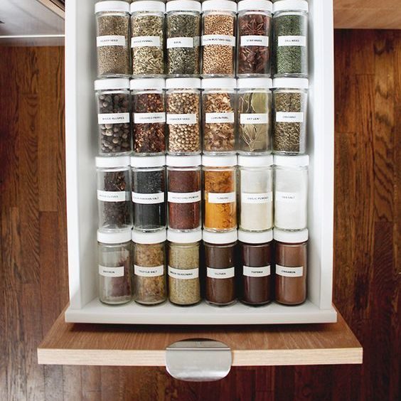 Благодаря хранению специй в выдвижном ящике, а не на настенной стойке, они всегда будут под рукой в нужный момент. Кроме того, вы сохраните качество и аромат приправ, если будете хранить их в тёмном месте, подальше от влаги и тепла.