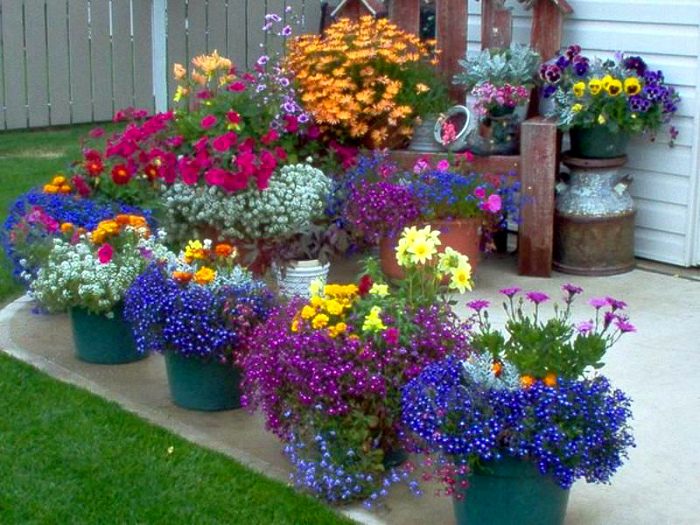 У каждого дачника есть несколько ненужных, дырявых или поржавевших ведер. Но если покрасить их и превратить в необычные цветочные горшки, композиция из такой «цветущей» тары станет эффектным украшением крыльца.