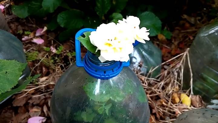 Пролейте и накройте пятилитровой бутылкой без дна с закрытой крышкой.