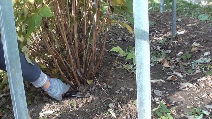 Прежде всего, следует провести обрезку. Ремонтантную малину можно, не боясь, обрезать под самый корень — до уровня земли. За следующий сезон она успеет отрасти и дать отличный урожай крупной малины!