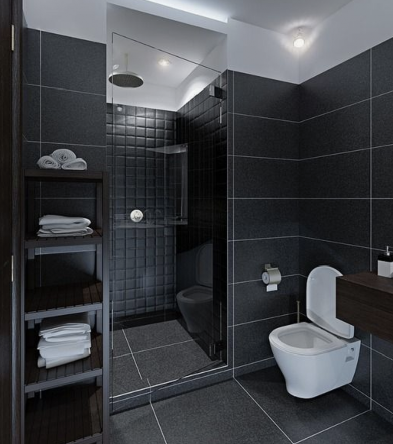 Темное оформление малогабаритной ванной комнаты может сыграть злую шутку. Из-за обилия черного цвета помещение будет сужаться, казаться еще меньше, а общее впечатление всегда будет мрачным.