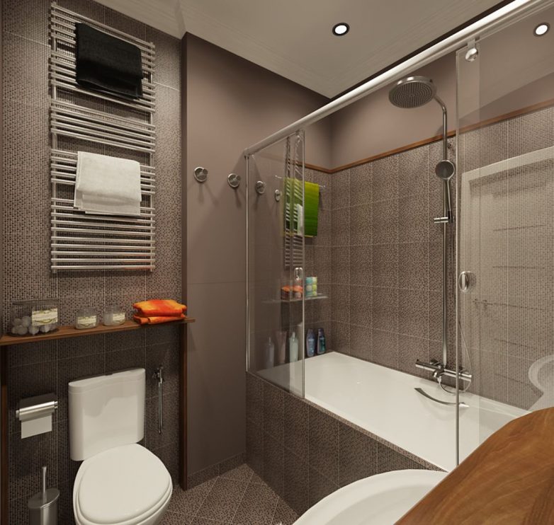 В условиях малогабаритной комнаты остро встает вопрос, что выбрать: ванную или душевую кабину. Дизайнеры интерьера советуют совместить их – поставить ванну и закрыть одну сторону стеклянной или другой перегородкой, создавая видимость душевой кабины.