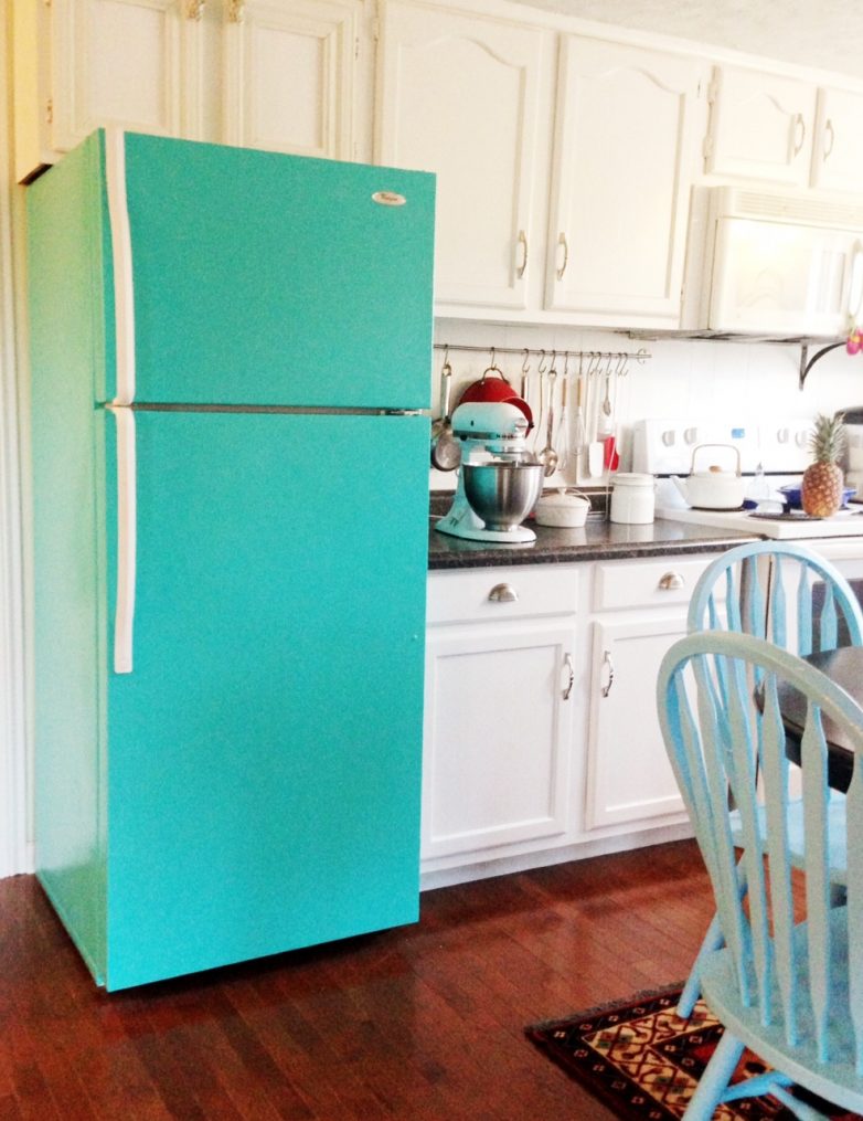 Если холодильник пережил множество переездов и перестал радовать вас красотой и чистотой, то его можно покрасить или обклеить специальной бумагой. Причем сделайте его более ярким, чем он был.