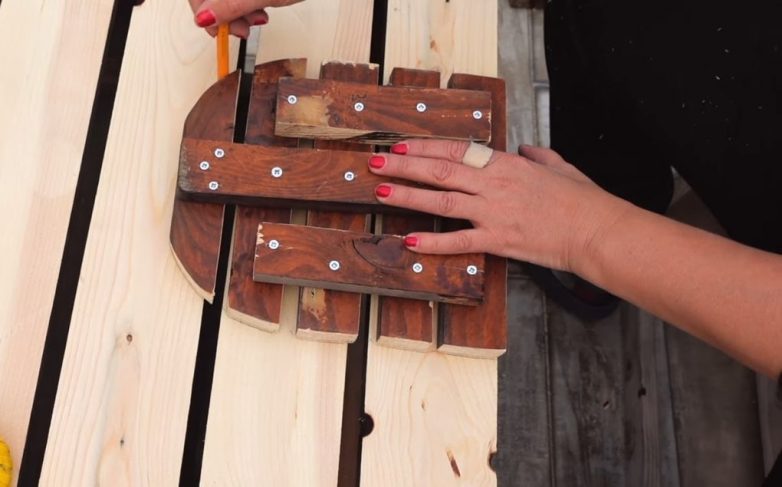 Соедините 5 досок между собой с помощью шестой доски, расположенной перпендикулярно к ним ровно посередине. Для дополнительной фиксации используйте еще две доски меньшего размера.