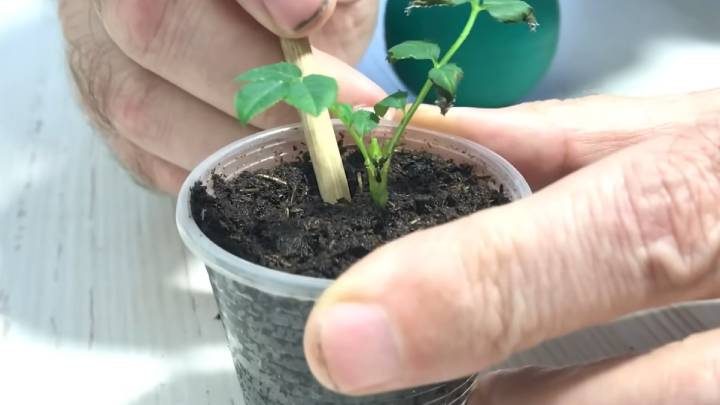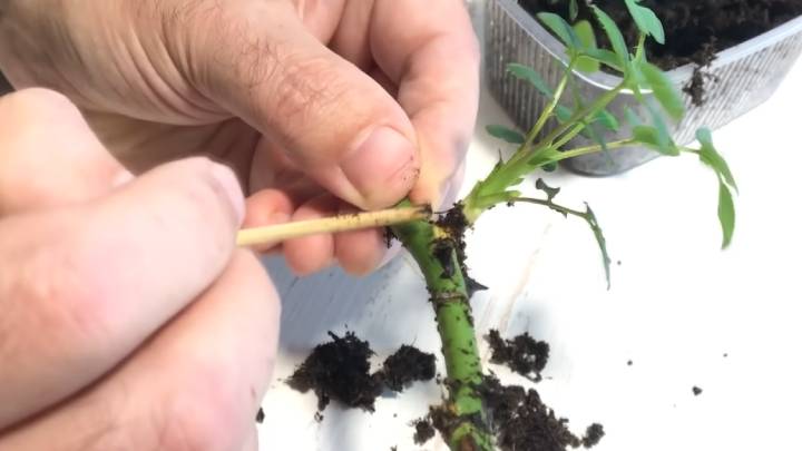«Пяточку» опудриваем любым стимулятором роста и устанавливаем во влажную землю, ставим на постоянное место в тепличку. Таким образом вы сможете укоренить даже розу из букета!