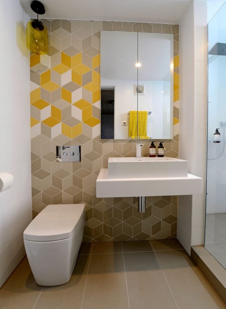 Различные варианты плитки в форме ромба, треугольников и других узорных видах не стоит выбирать для малогабаритной ванной комнаты. Такая плитка смотрится эффектно, но может сузить пространство.