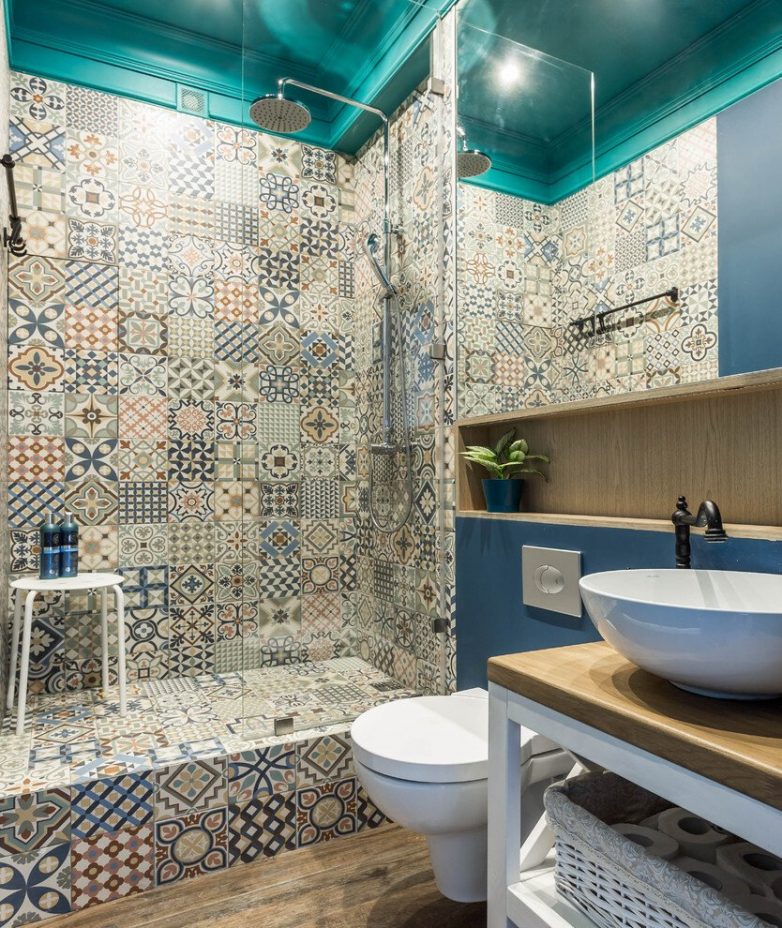 Плитка с пестрым узором скрадывает углы