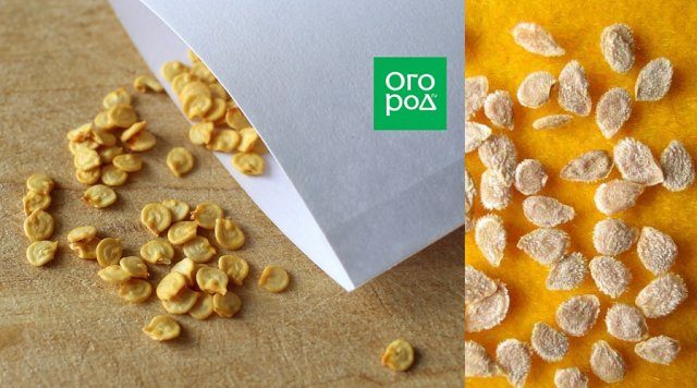 Слева семена перца, справа семена томатов