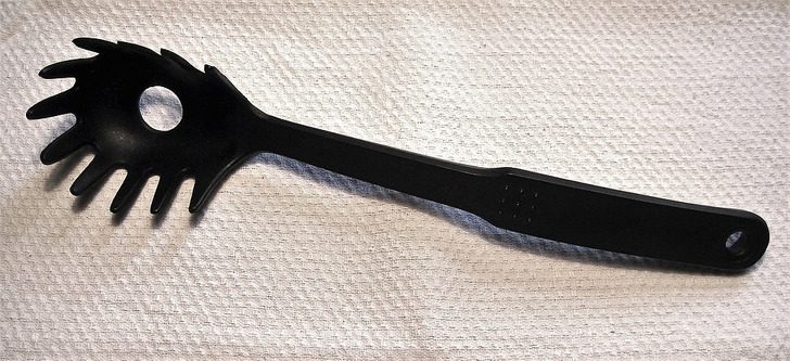 Ложкой для спагетти удобно накладывать макароны. Но если с зубчиками все понятно, то отверстие в центре ложки вызывает вопросы. Оказывается, его идея очень проста. Количество сухих макарон, которое умещается в это отверстие, считается одной порцией. Имея такую ложку под рукой, вы уже не будете бросать макароны в воду на глазок.