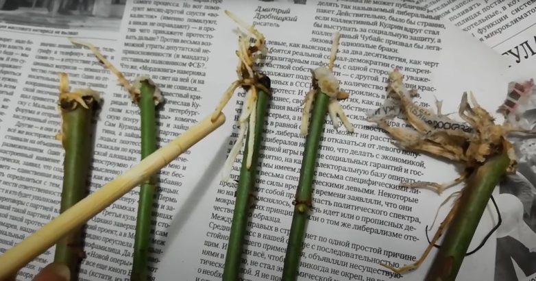 Для успешного прорастания черенки следует положить в темное и прохладное место. Через 1,5-2 недели черенки необходимо проверить. Если несколько черенков потемнеет, просто выкиньте их, оставив только те, у которых уже проклюнулись корешки.
