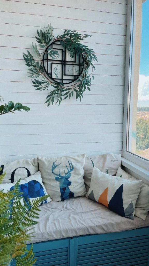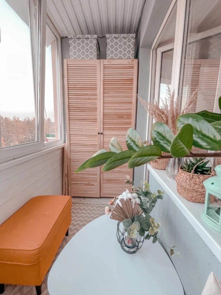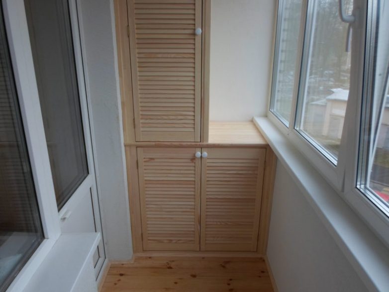 На балконе жалюзийные двери можно использовать, чтобы организовать хранение