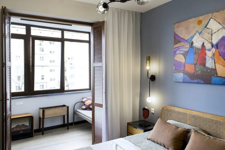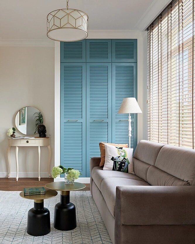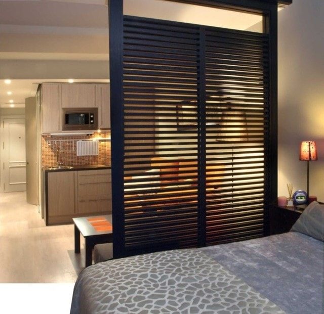 Жалюзийные двери являются отличным декоративным элементом зонирования комнаты