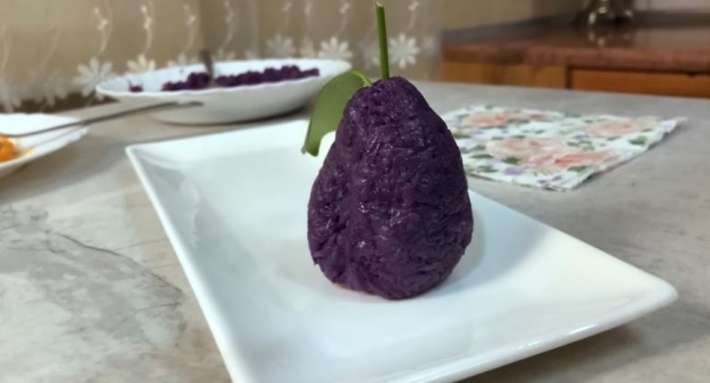 Перед подачей на стол присыпьте закуски в форме сливы кокосовой стружкой.