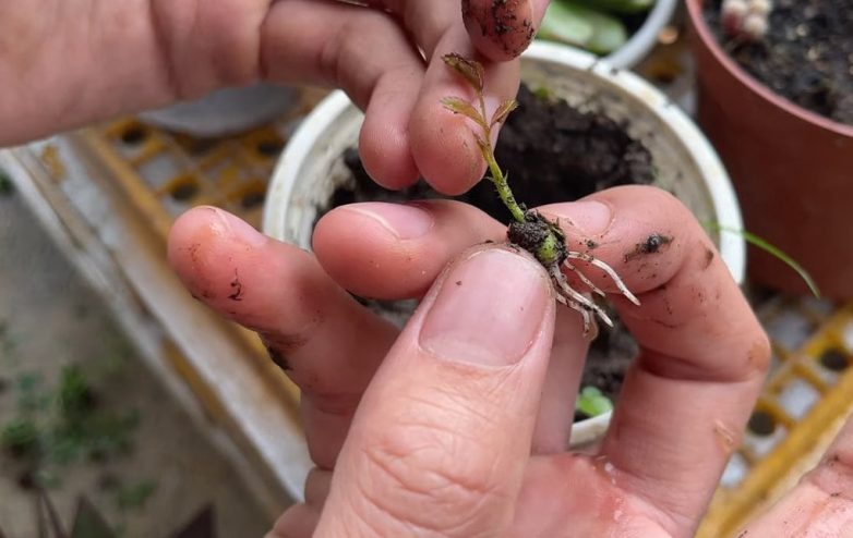 Пересадите будущие розовые кустики в горшок большего диаметра и продолжайте ухаживать за ними обычным образом. Уже весной их можно будет посадить на постоянное место на участке.