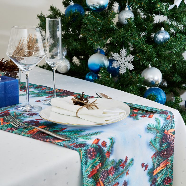 Не забудьте к Новому году украсить свой праздничный стол. Для этого выбирайте самую яркую скатерть или бегунок в новогодней тематике. Даже самый маленький стол будет выглядеть богато и празднично с таким оформлением.