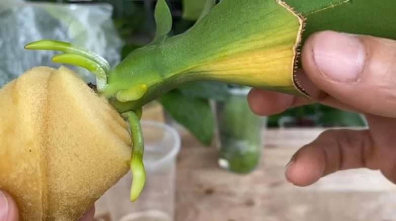 Примерно через 20 дней начнут появляться молодые корешки, листья станут более упругими и сочными.