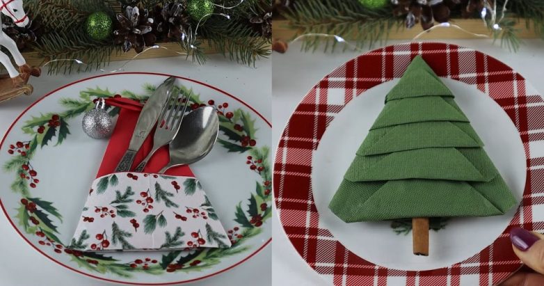 Добавить капельку волшебства в убранство новогоднего стола всегда можно при помощи обычных салфеток. Времени это займет минимум, зато все присутствующие будут в восторге.