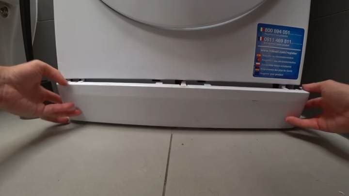 Снимите пластиковую заглушку внизу машинки. Вы увидите отсек насоса слива воды.