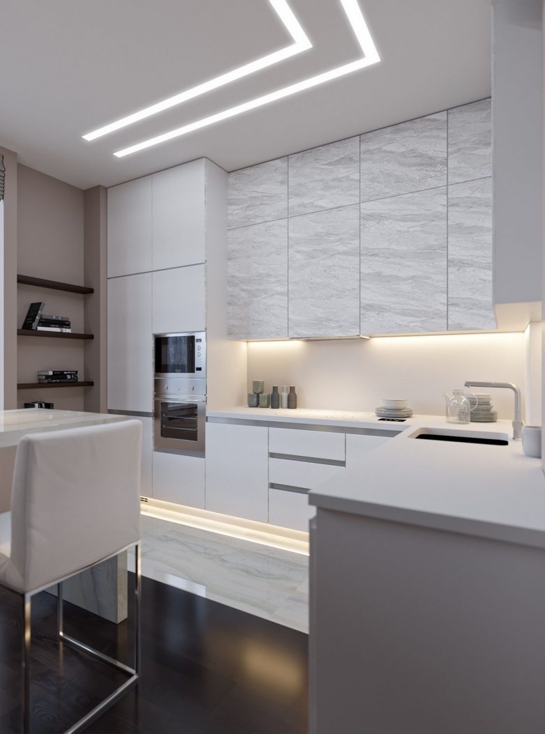 Освещение в квартире играет важную роль. Многие дизайнеры используют хитрость – выбирают контурное освещение по всей квартиры, тем самым разделяют комнаты на отдельные и красивые зоны.