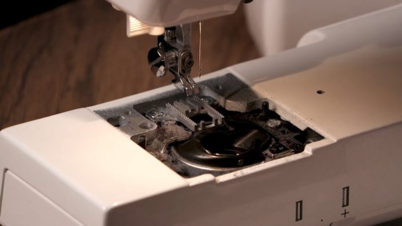 Огромное количество мусора и пыли скапливается именно в этой части швейной машины.