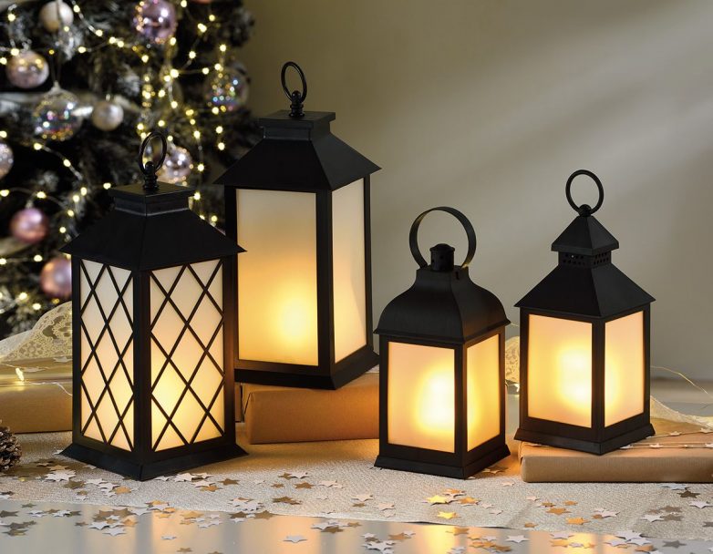 Отличным украшением камина или подоконника станут свечи в фонариках. Они выглядят необычно и мигающие в них огоньки действуют на человека притягательно и завораживающе.