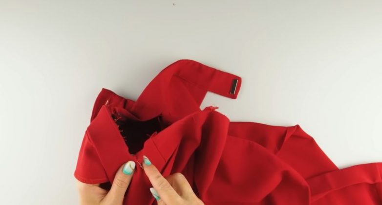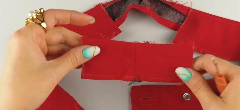 Сколите выкроенную деталь с внутренней частью пояса, проложите фиксирующую строчку. Вырезанный внутренний участок пригодится для увеличения пояса с наружной стороны. Вколите и вшейте деталь во внешнюю часть пояса. Восстановите шов пояса и соедините пояс с основным изделием.