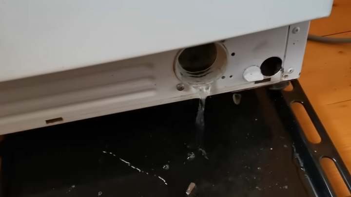Прежде чем начать ремонт, следует слить всю воду. Внизу открутите отсек и слейте. Затем переверните машинку вверх ногами. Вы увидите два амортизатора. Их нужно открутить.