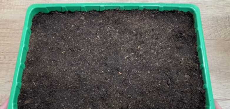 Для выращивания рассады потребуется емкость глубиной 6-7 см. Наполните емкость рыхлой плодородной землей. Уровень земли должен быть на 1-1,5 см ниже края плошки.