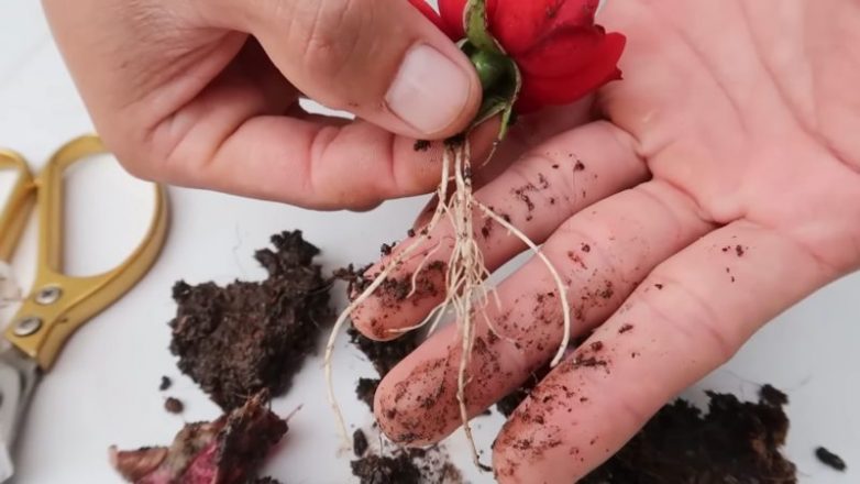 При правильном и очень простом уходе, из одного бутончика можно будет вырастить полноценный розовый кустик. Все, что потребуется для размножения розы — головка красного лука.