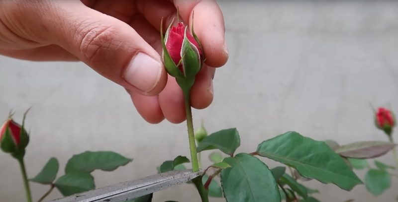 Срежьте нераскрывшийся бутон розы, используя стерильный инструмент.