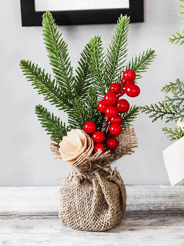 Хвоя тем хороша, что стоит очень долго. Поэтому из нее можно сделать красивый букет в зимнем стиле, и поставить его в центр комнаты. Добавьте к веткам еще какие-нибудь зимние растения, чтобы получить более яркую композицию.