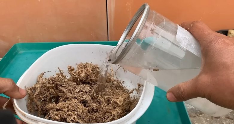 Очень важно правильно подготовить субстрат для размножения орхидей. Для этого одну столовую ложку белого цемента залейте 500 мл воды. Хорошо перемешайте, подождите, пока цемент осядет на дно, и вода станет прозрачной. Используйте отстоянную воду с цементом для дезинфекции мха, который отлично подходит для размножения орхидей.