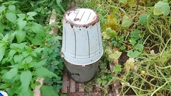 Подготовьте два ведра. В одном сделайте прорези. Соедините со вторым с помощью проволоки.