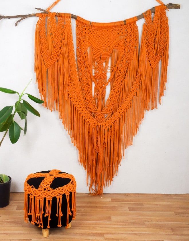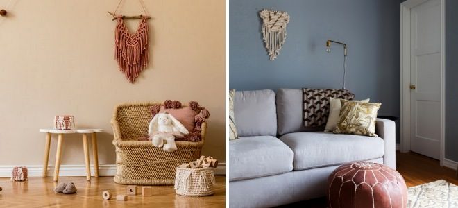 И это не удивительно, ведь с помощью техники узелкового плетения можно создавать поистине уникальные вещи, начиная от небольших декоративных элементов и настенных панно, и заканчивая красивыми наволочками, оригинальными абажурами, объемными пледами и даже полноценной мебелью.