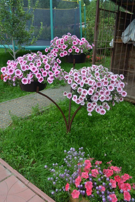 Чаще всего для выращивания петуний используются подвесные кашпо. Конечно, даже в обычных горшках петуния смотрится очень красиво, но такой посадкой уже никого не удивишь.