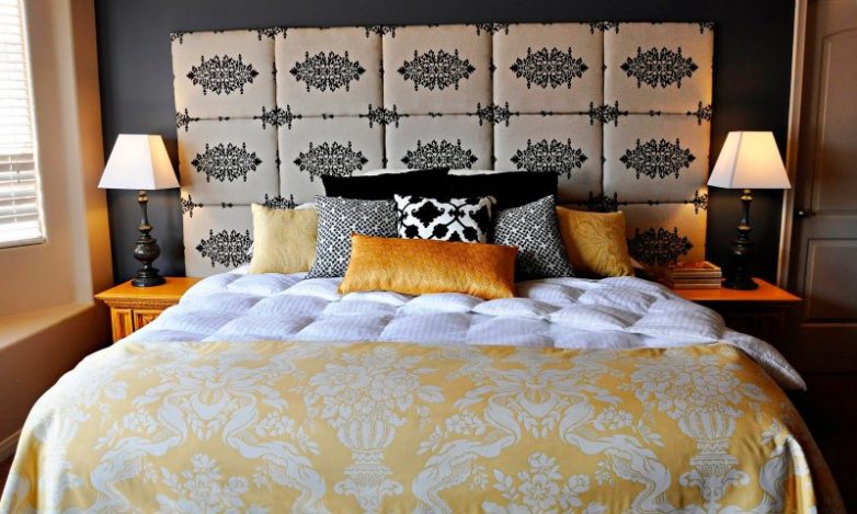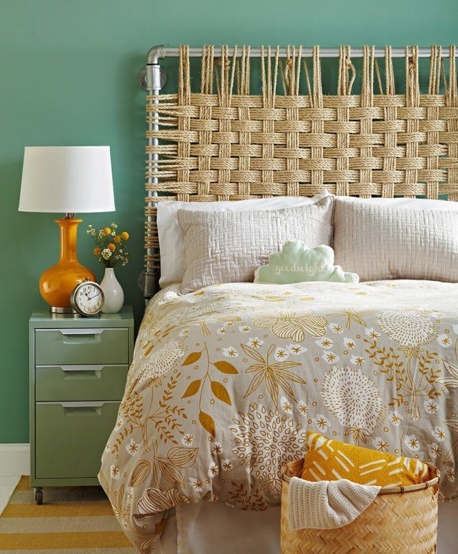 Оригинальное изголовье можно сколотить из досок, сшить из красивой ткани, сплести из толстой пряжи и даже нарисовать на стене. Вариантов разной сложности огромное количество, выбирайте тот, который вписывается в ваш интерьер, и смело воплощайте его в жизнь.