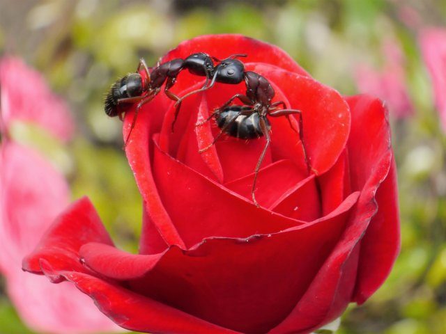 Первый признак появления тли – обилие муравьев, снующих по стеблям розы