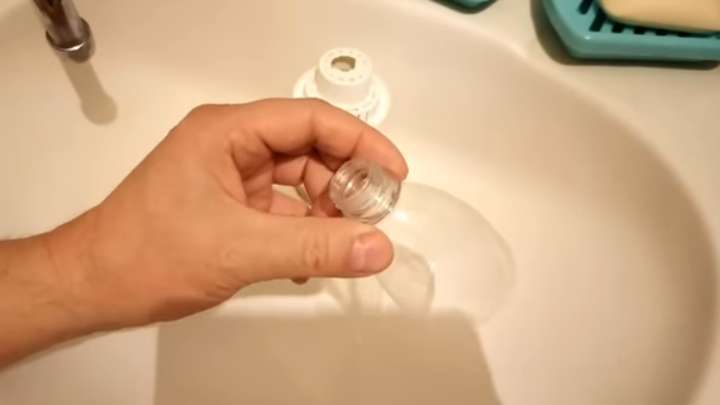 У смесителя открутите аэратор. Переверните фильтр и любым удобным подручным инструментом слегка вдавите внутрь сетку через отверстия, чтобы она не так плотно прижималась к пластику, и вода легче проходила и прочищала грязь.