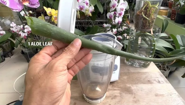 Для более быстрого восстановления орхидеи потребуется алоэ вера, который содержит большое количество питательных веществ и витаминов. Кроме того алоэ отлично защитит растение от бактерий и грибка. Для приготовления один лист алоэ измельчите в блендере с 0,5 литрами воды.